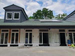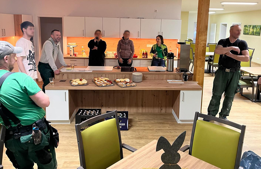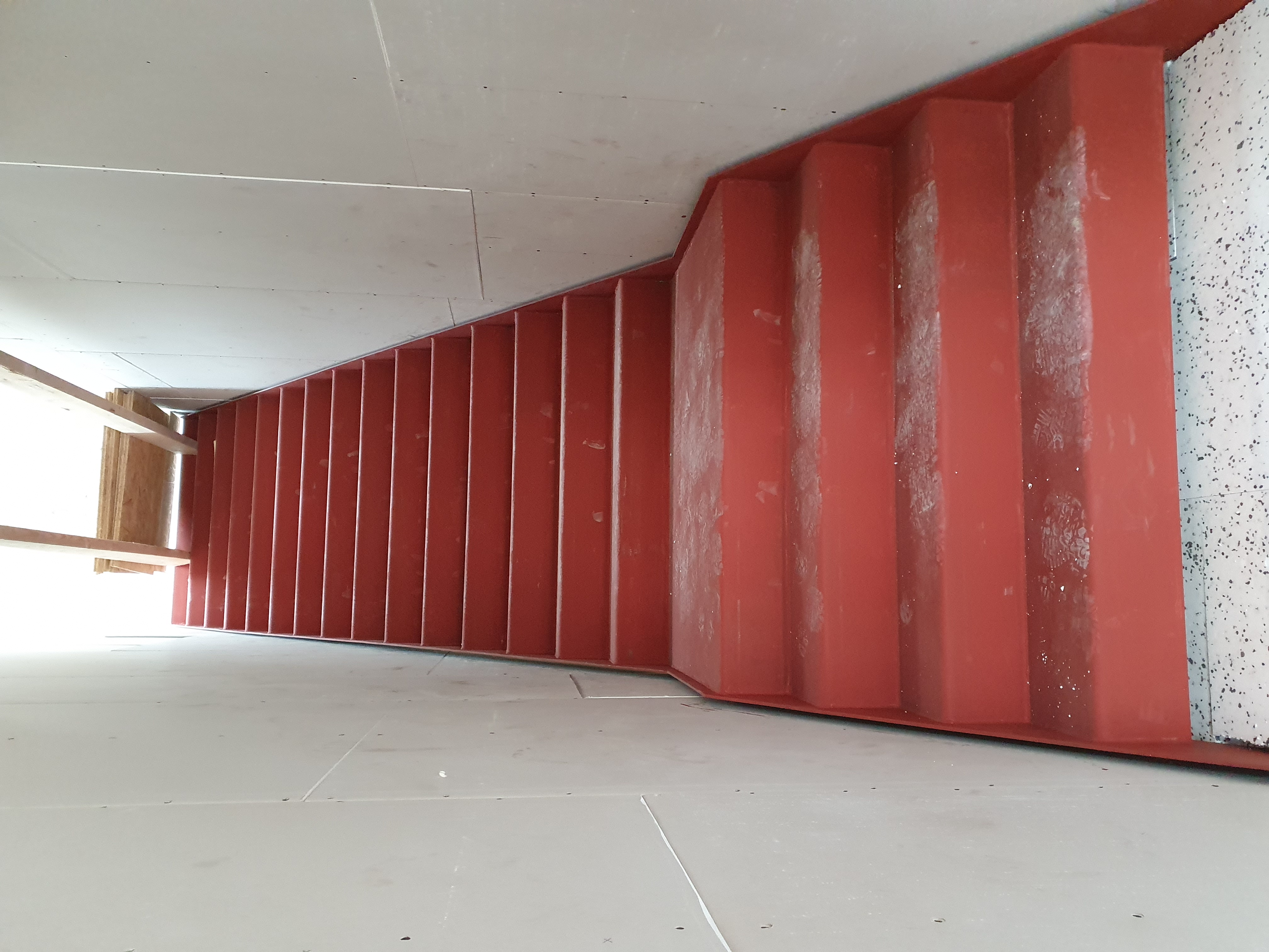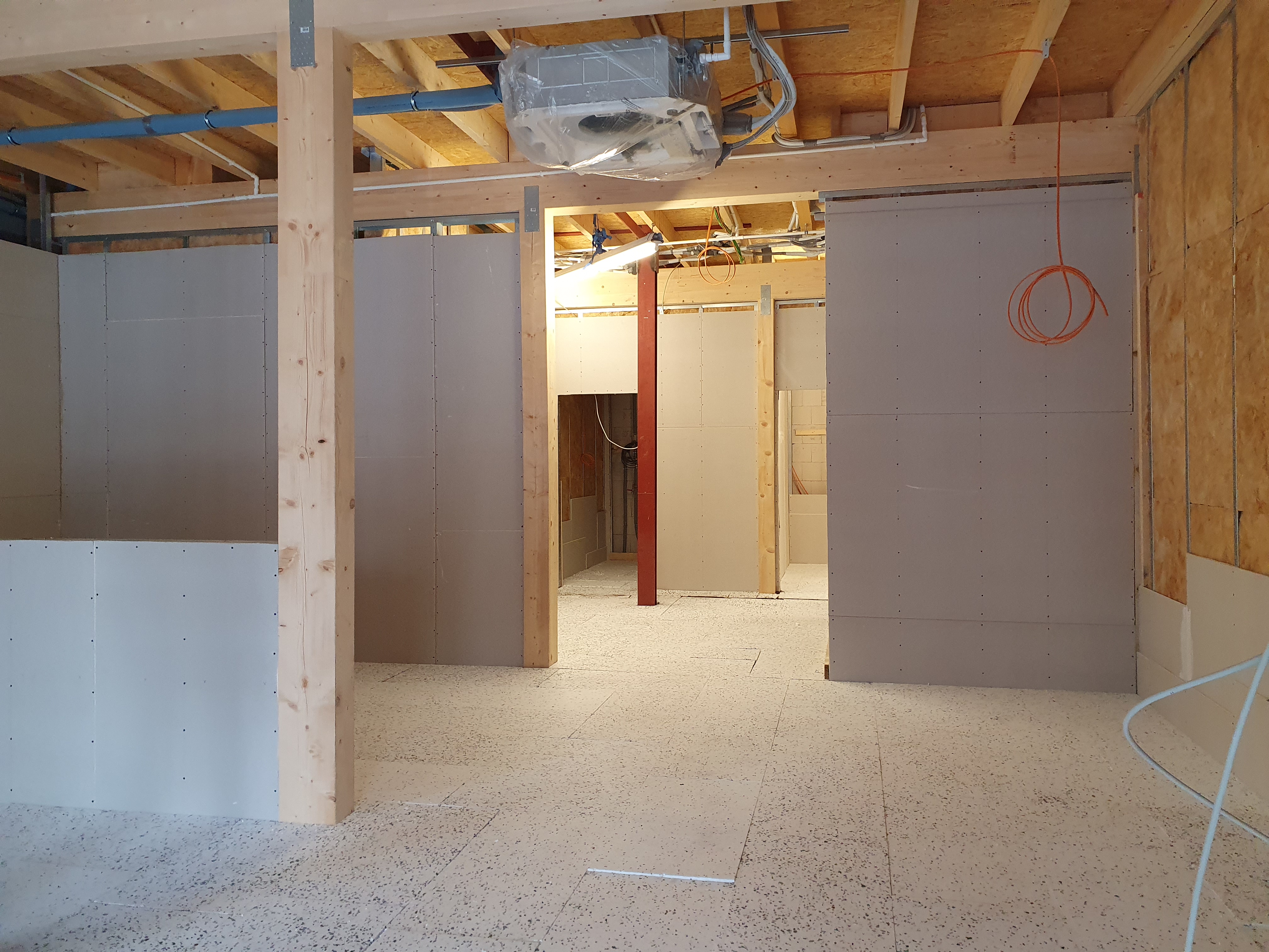 In der zukünftigen Arztpraxis sind die Wände gestellt und der Boden ist fast fertig.