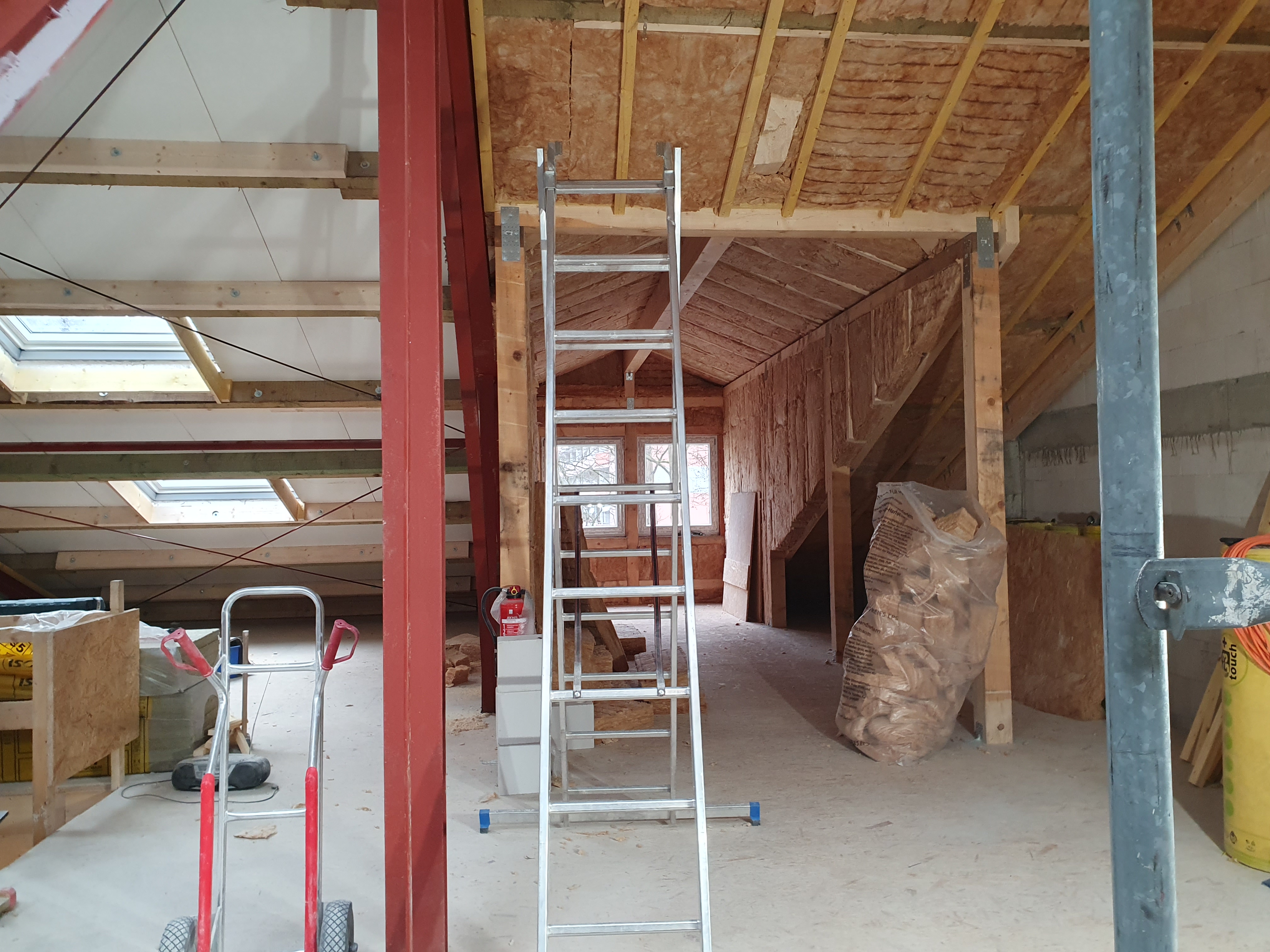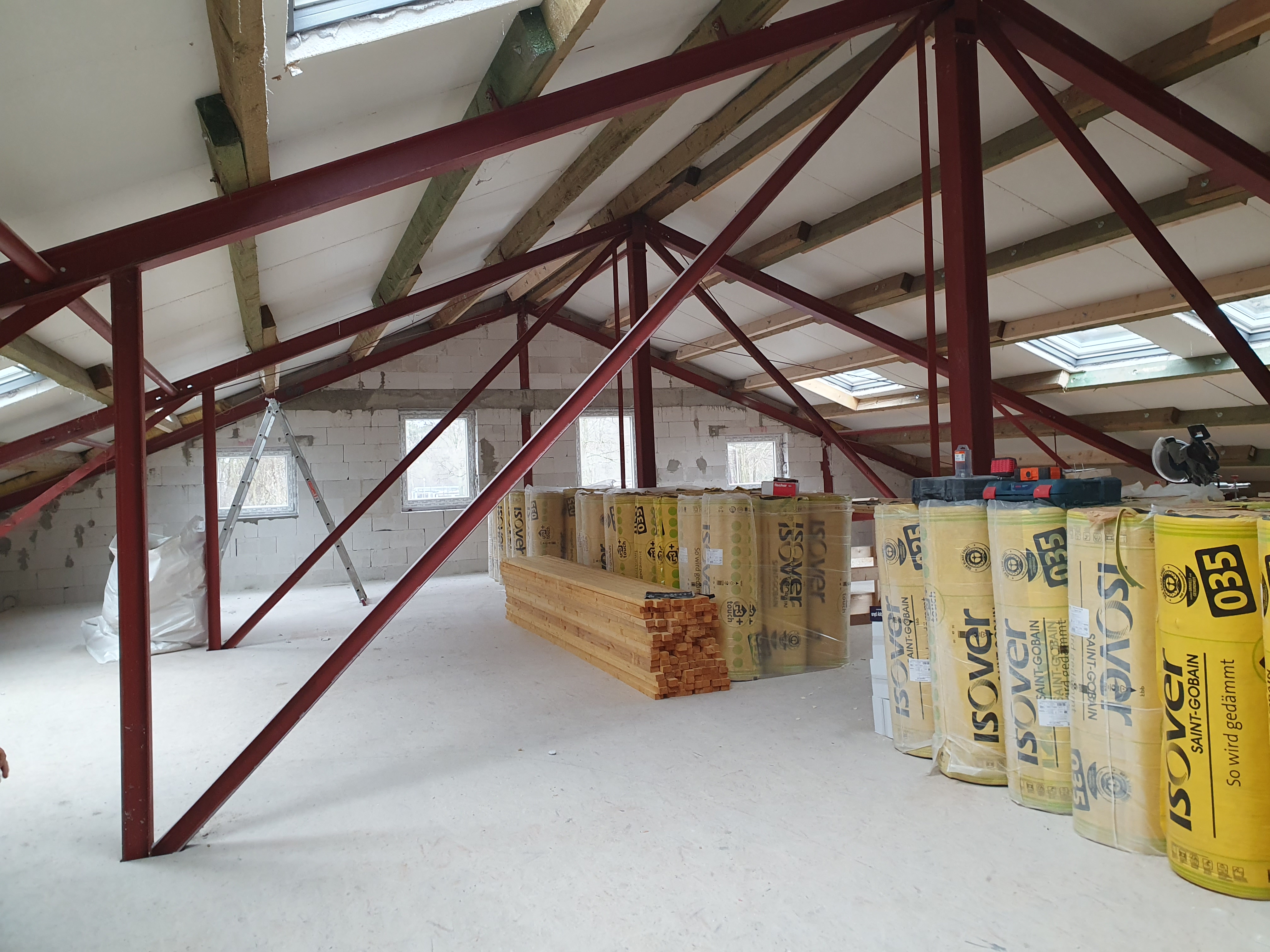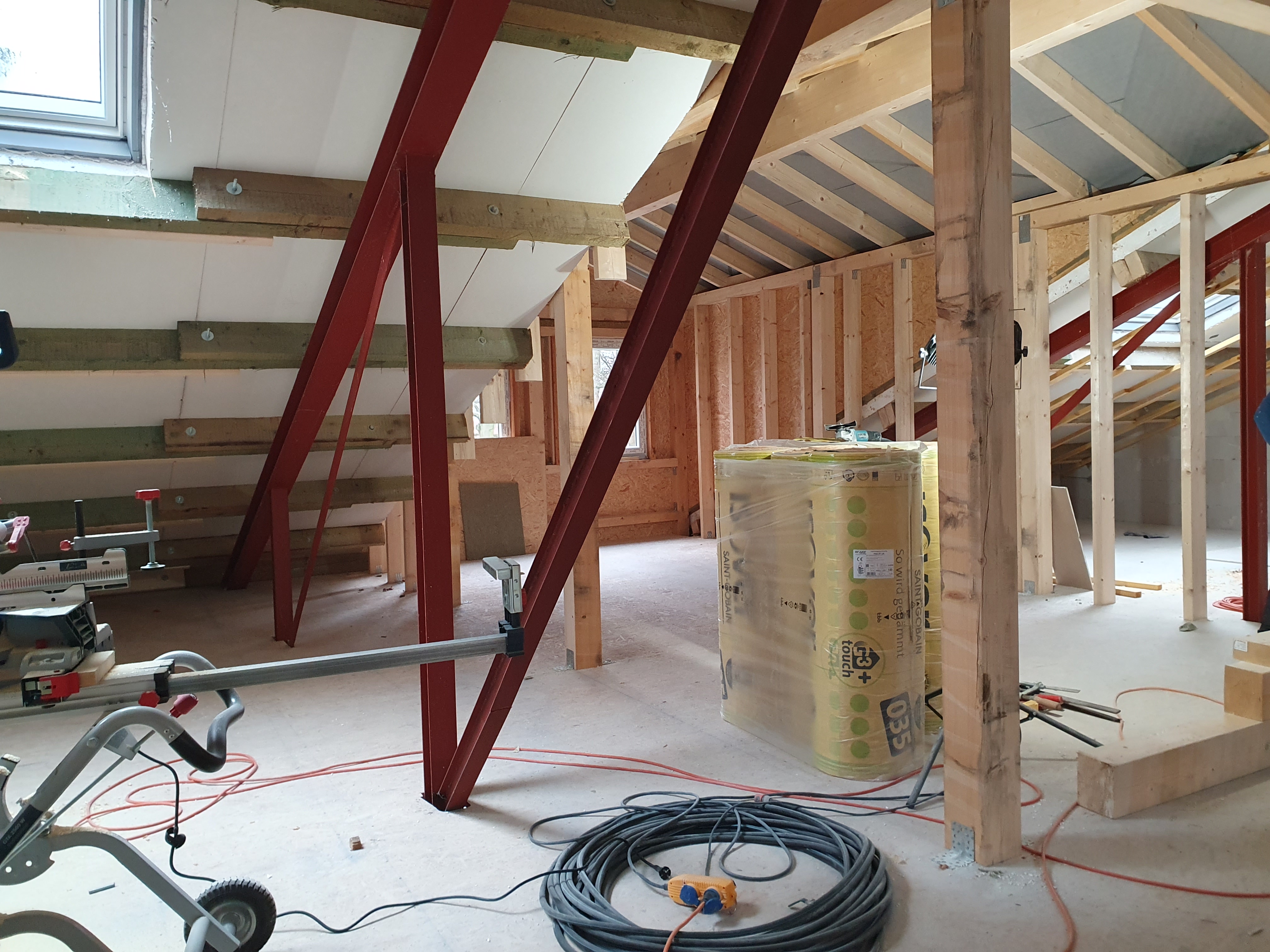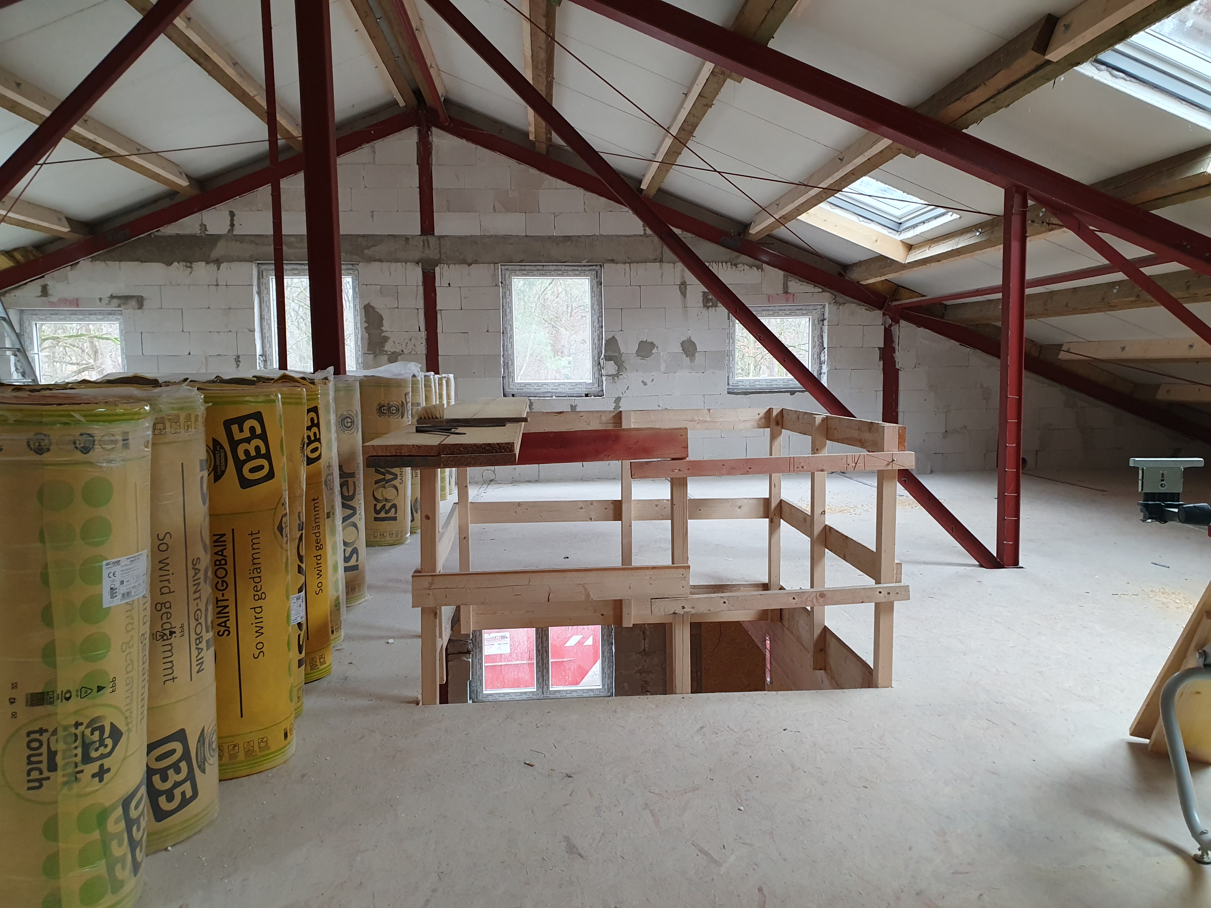 Innen ist das Obergeschoß entstanden und wird nun tatkräftig ausgebaut.