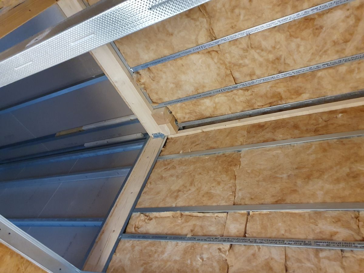 In der zukünftigen Arztpraxis sind die Wände gestellt und der Boden ist fast fertig.